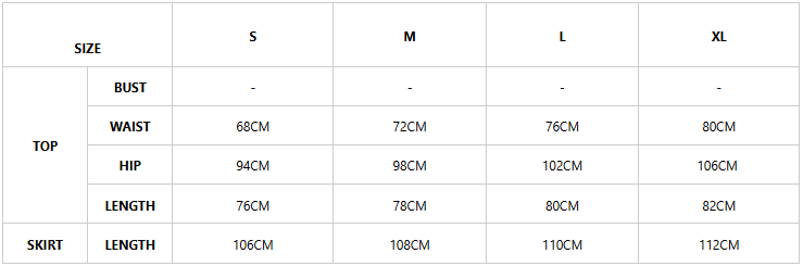 Garment measurements by size (in cm), please allow a measurement tolerance of 1-2 cm.