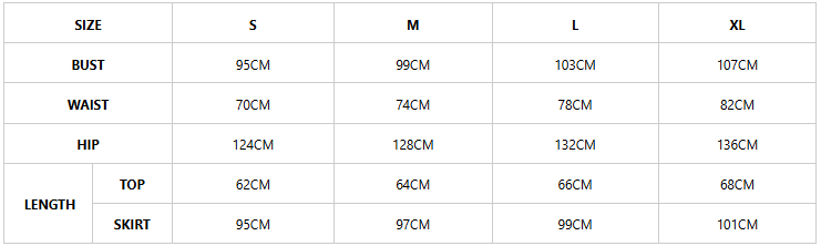 Garment measurements by size (in cm), please allow a measurement tolerance of 1-2 cm.